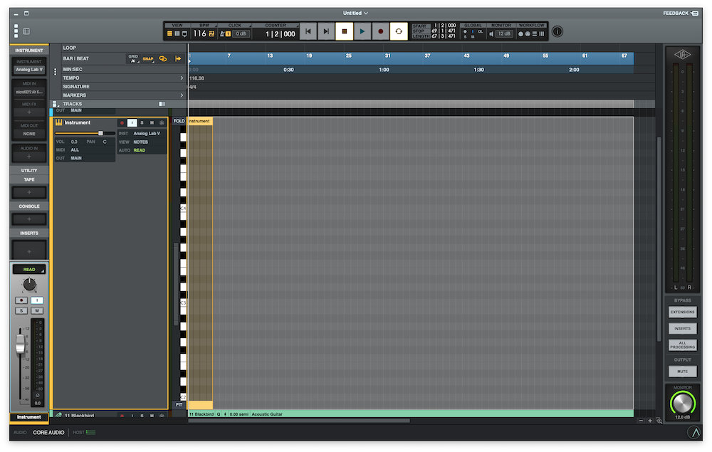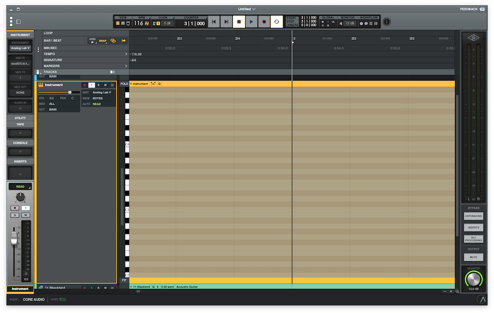 新しいインストゥルメンタル(MIDI)トラックを追加します