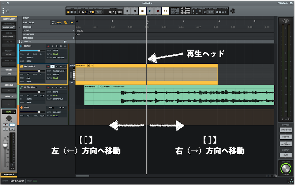 再生ヘッド(Play Head)の移動