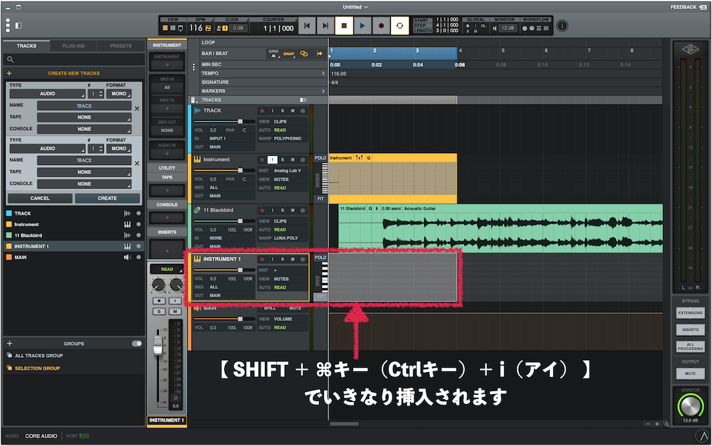 新しいインストゥルメンタルトラックを追加