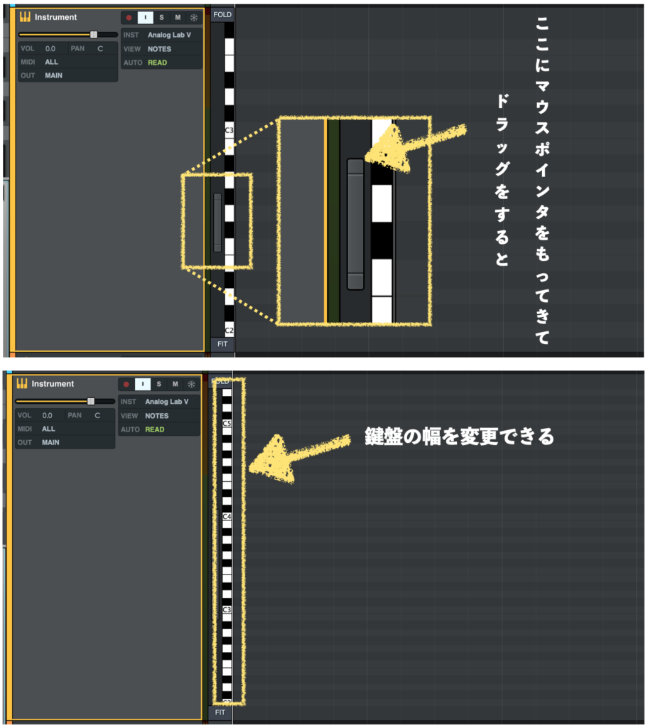 Harrison ConsolesのMixbusみたいにトラックの枠内に表示されて、ここの上下幅が手軽に広げる方法が見つけられないw